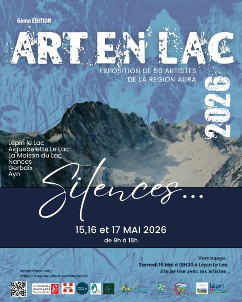L’association Art en Lac organise sa 6ème édition autour du thème « Silences ». Cette exposition réunira 50 artistes de la région Rhône-Alpes Auvergne, qui proposeront leur interprétation du thème à travers des peintures, sculptures et photographies.